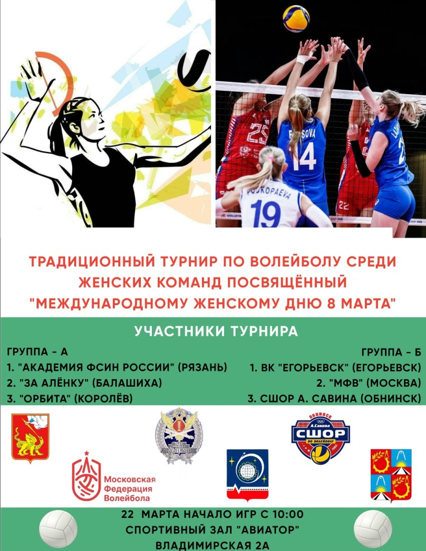 22.03.2026г. В спортивном зале «Авиатор» состоится Традиционный турнир по волейболу среди женских команд посвящённый «Международному женскому дню 8 марта» Начало игр с 10:00.