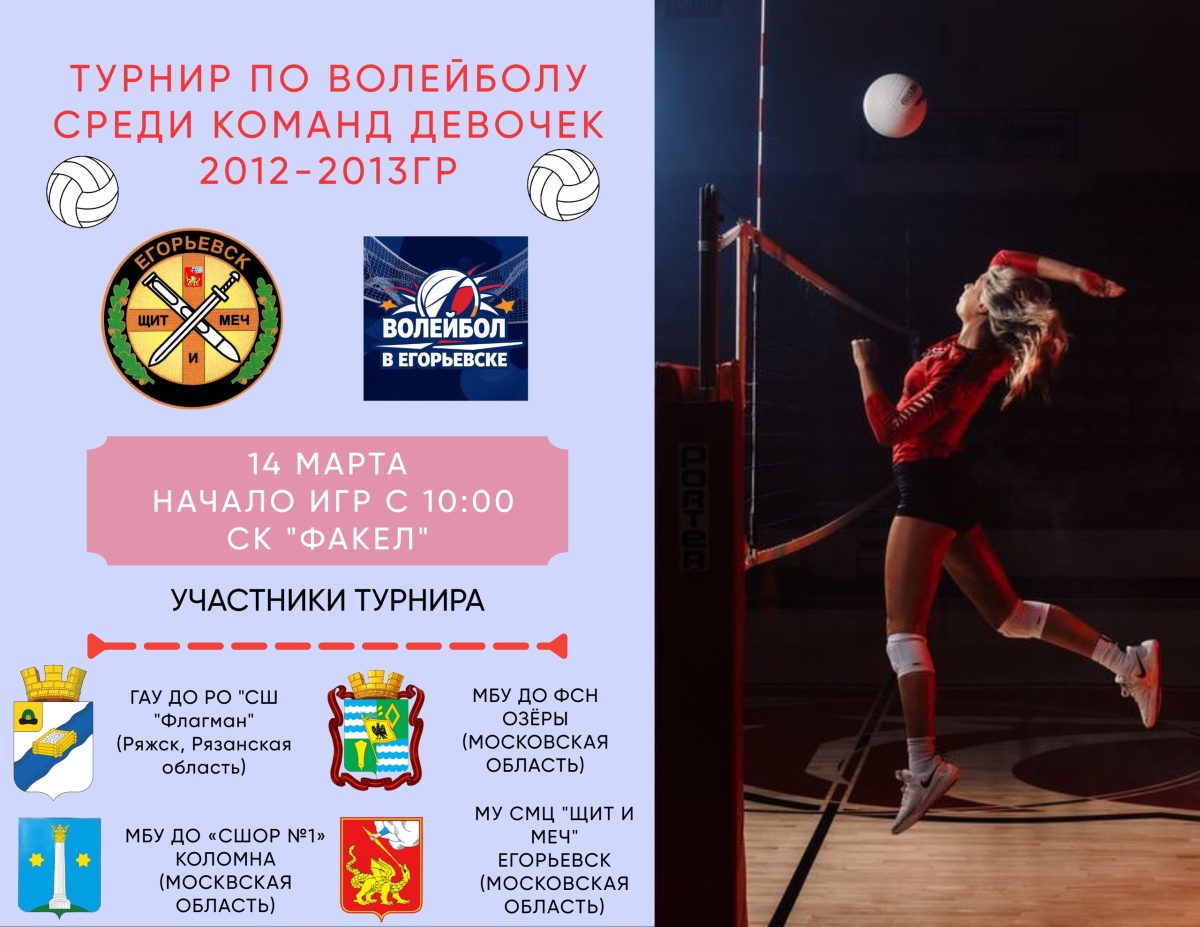 14.03.2026г. В спортивном комплексе «Факел» состоится турнир среди команд девочек 2012-2013гр. Участие в турнире примут команды Московской и Рязанской области. Начало игр с 10:00
