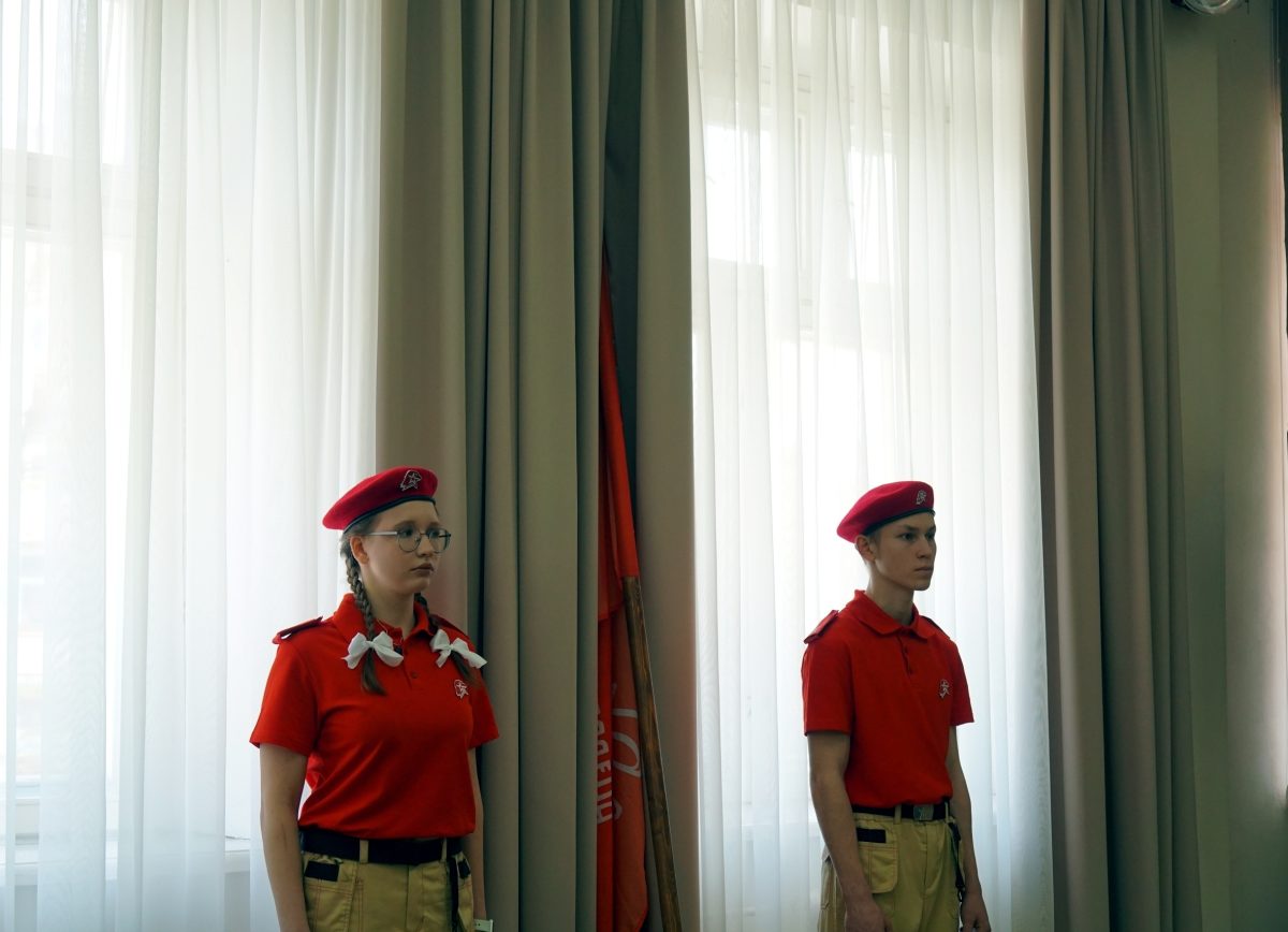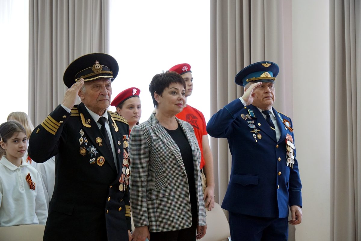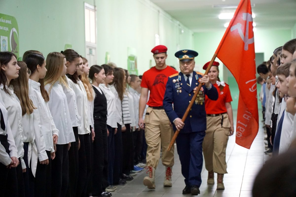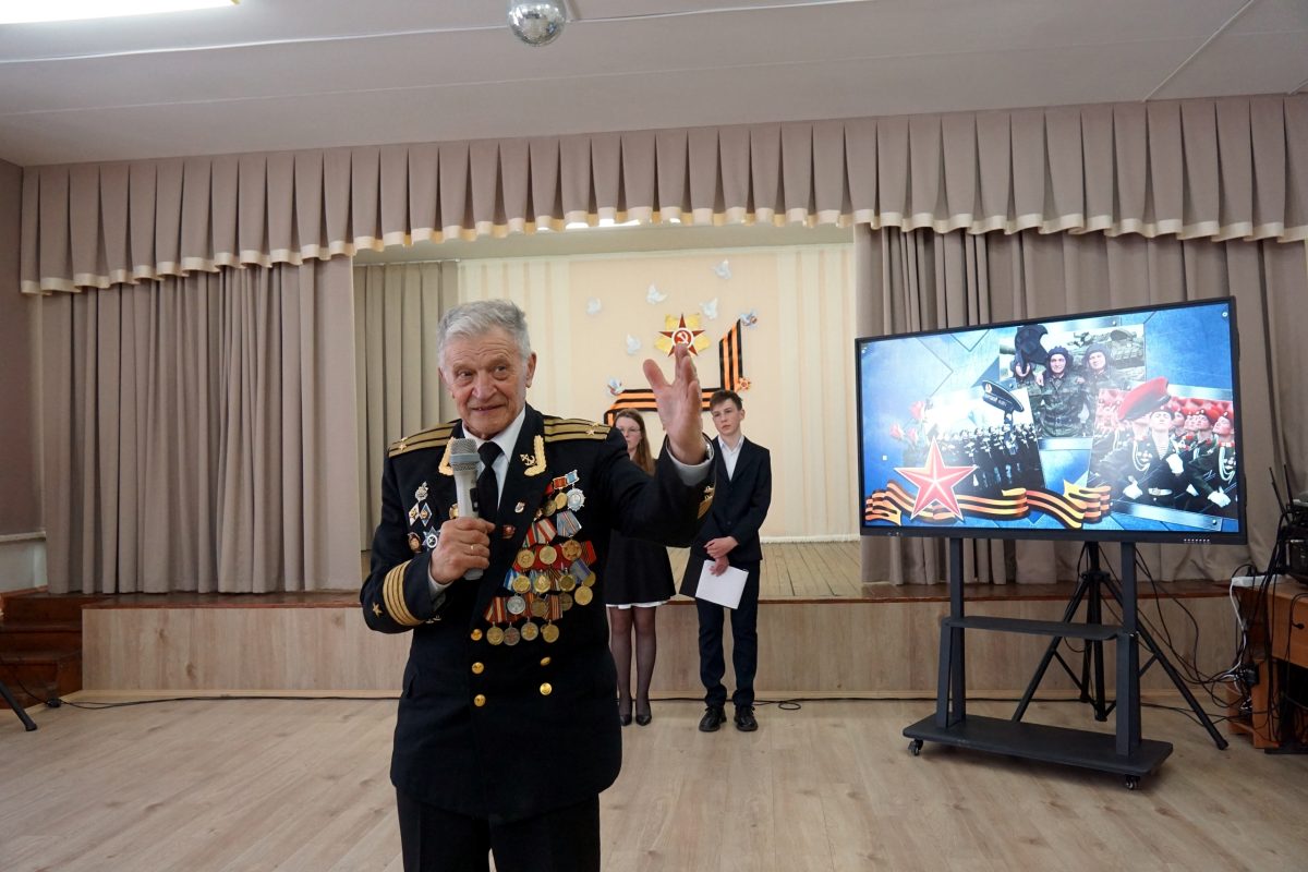 Председатель Совета ветеранов Георгий Кислов рассказал учащимся о водружении знамени 150-й Идрицкой стрелковой дивизии над Рейхстагом и о героях нашей страны в годы Великой Отечественной войны и при выполнении специальной военной операции.