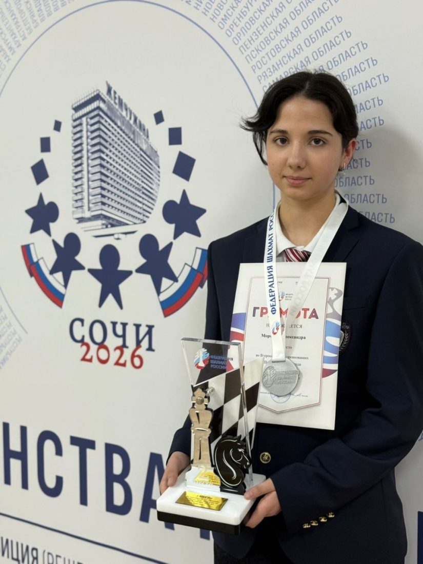 Спортсменка СШ «Лидер» Александра Морозова стала серебряным призёром всероссийского соревнования на шахматам «Первая лига — 2026» среди девушек до 17-ти лет (в рамках детского первенства России)! Турнир проходил в Сочи с 6 по 14 февраля.