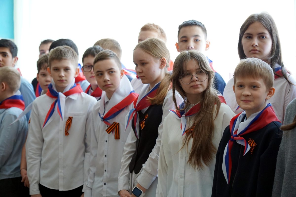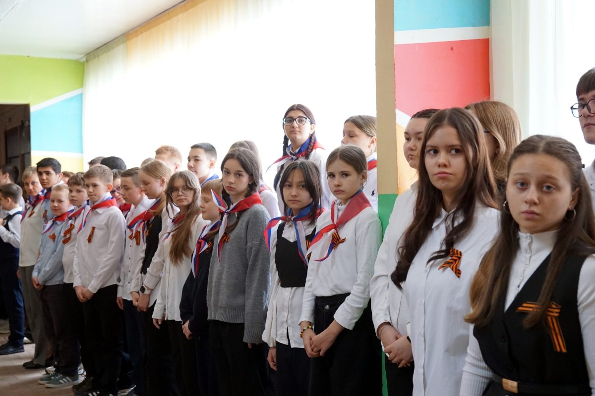 В МБОУ СОШ 3 приняли эстафету копии штурмового флага 150-й ордена Кутузова II степени Идрицкой стрелковой дивизии.